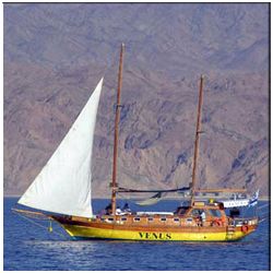 ונוס - 17 מטר של שלווה ושנטי עם השירות המקצועי של אבי ודורון, היאכטה מפליגה מדי יום מהמרינה באילת לשייט חלומי מול הרי אדום ומגיעה לגבול ישראל - ירדן, גבול מצרים - טאבה ועד אי האלמוגים | הפלגה לאי האלמוגים | אדות יאכטה ונוס | שייט רומנטי באילת